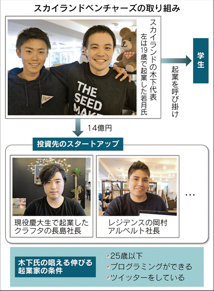 投資は U25起業家限定 スカイランドベンチャーズ 日本経済新聞